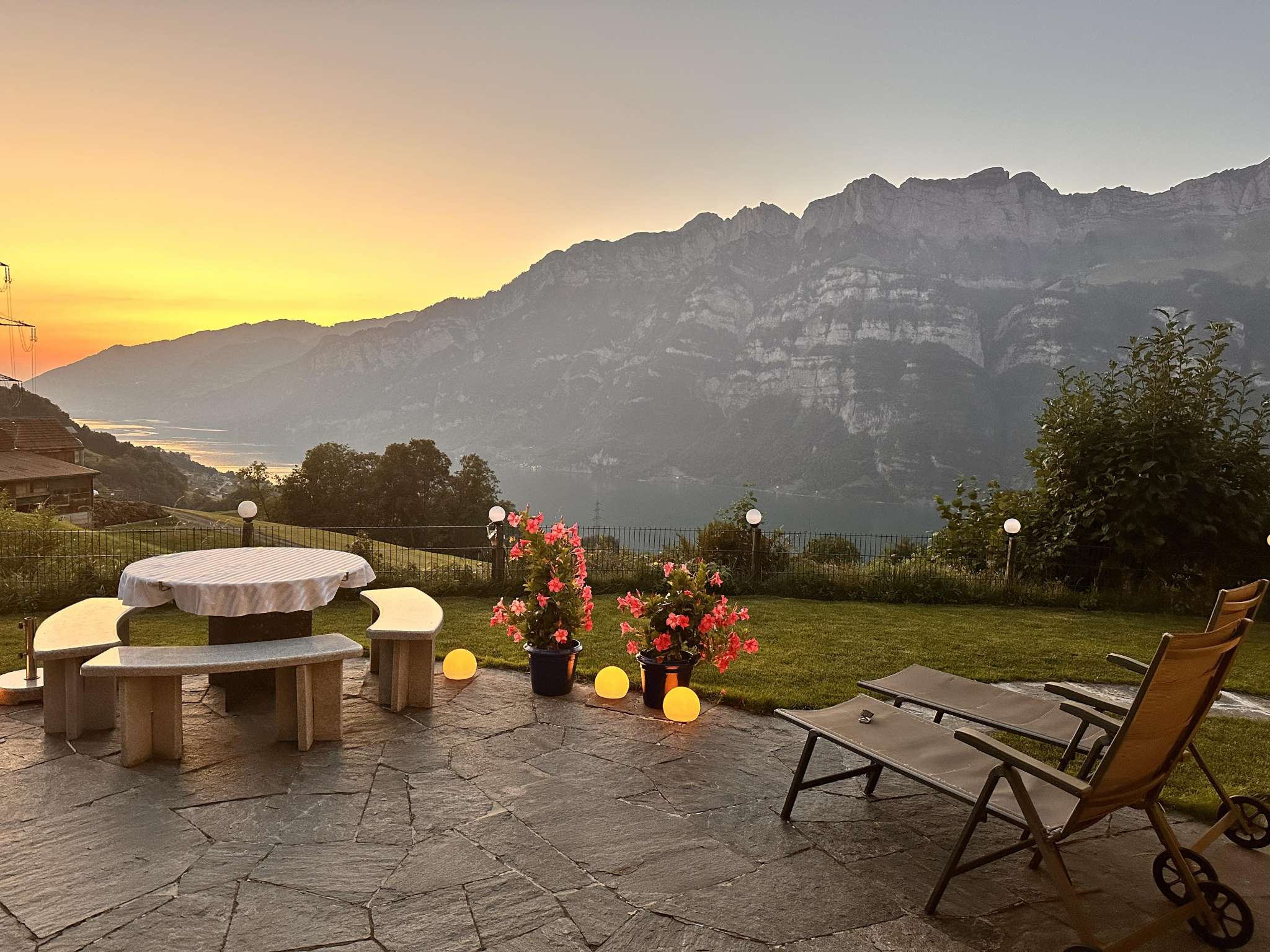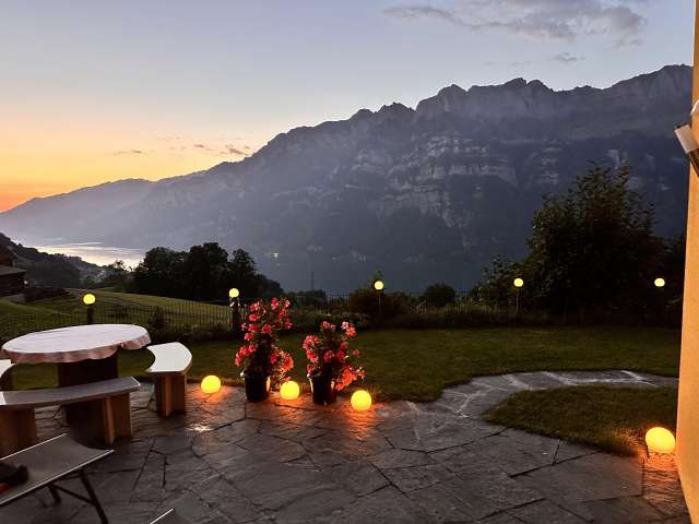 Die Ferienwohnung Bijouswiss The Yellow House in Oberterzen bietet eine private Sauna, einen gemütlichen Wohnraum und eine moderne Küche. Sie liegt in der Nähe des Walensees und der Bergbahnen, ideal für Erholung und Aktivitäten.
