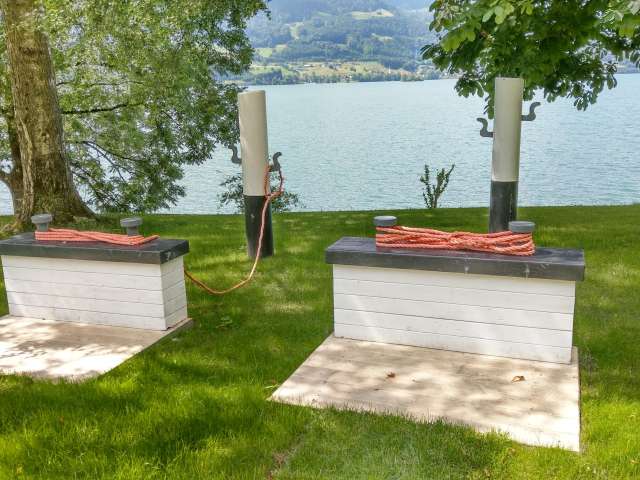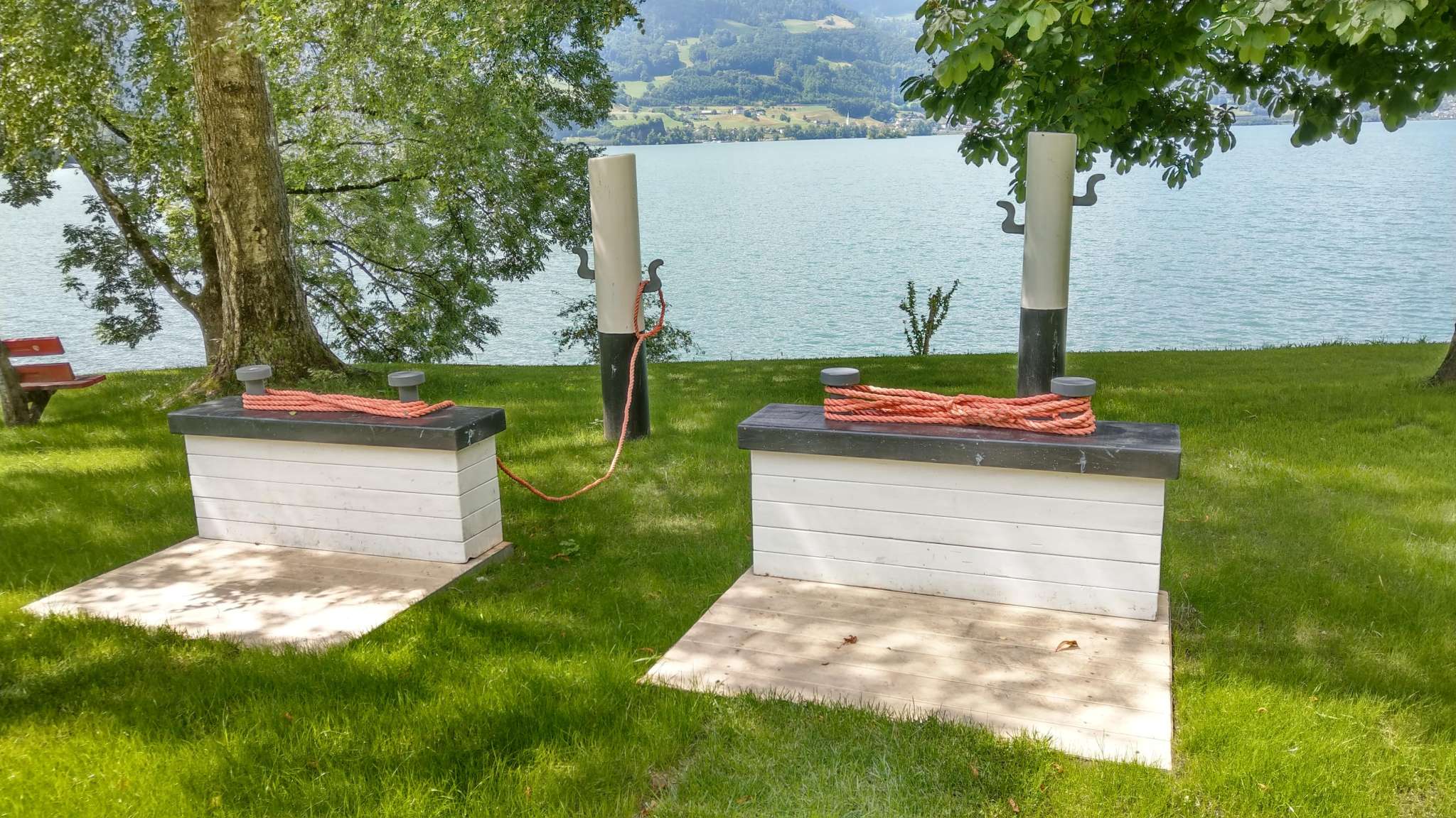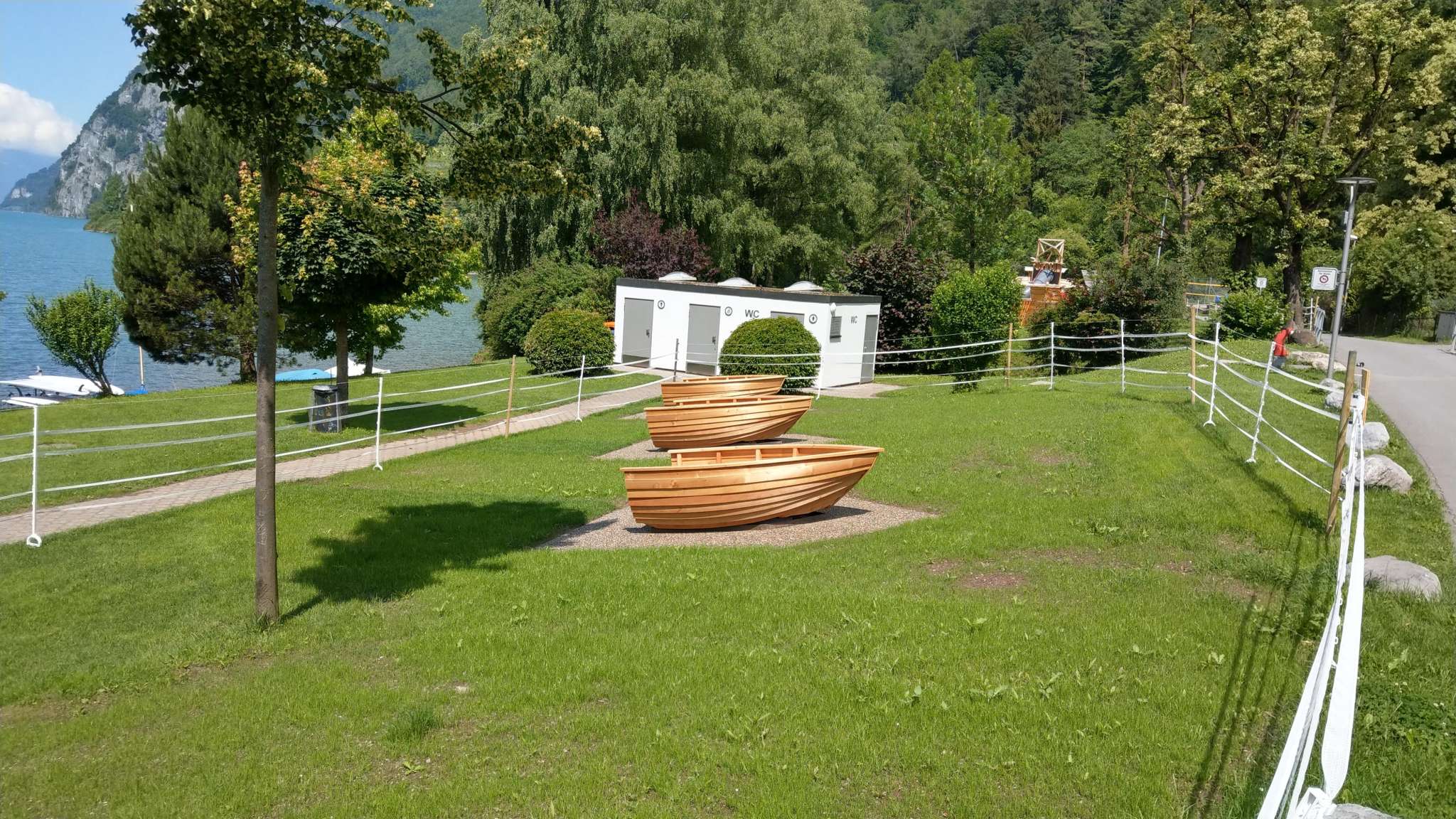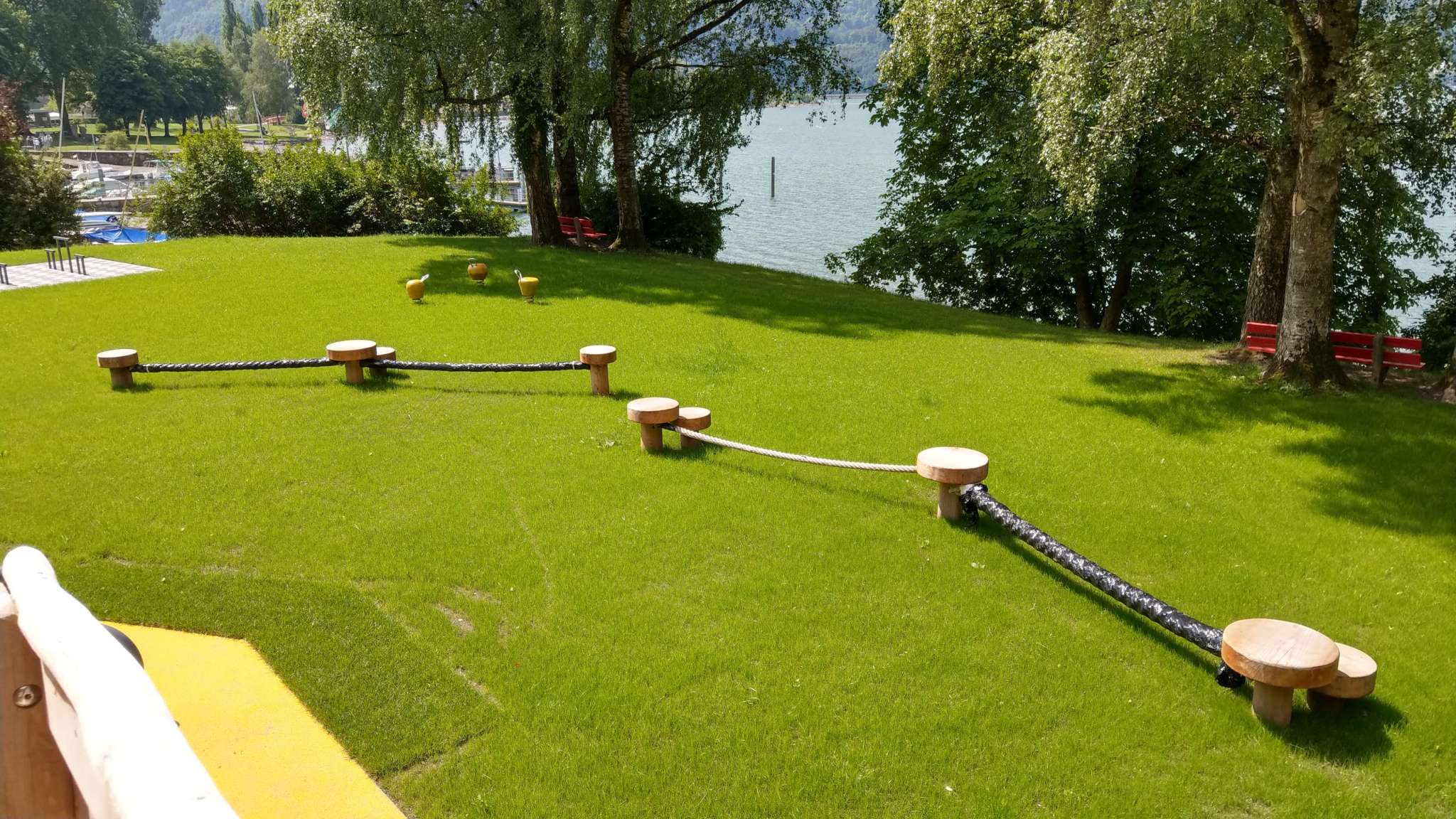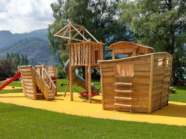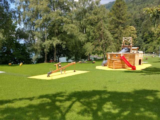 Wellen, Wind, Steine, Bäume und Wiesen: Der idyllische Strand am Seeufer von Walenstadt ist voller Leben – und das nicht erst seit gestern. Auf dem Spielplatz hat es ein grosses Holzschiff, auf dem du nach Herzenslust herumklettern kannst und per Rutschbahn-Express saust du später wieder hinunter. Auch Wippe, Schaukel, Balancierpfad und Geschicklichkeitsspiel greifen Elemente der Schifffahrt auf. Achte einmal draus, wo du überall Seile und Netze findest… Der Spielplatz ist Teil der grossen Liegewiese am rechten Seeufer. Hier hast du genügend Platz zum Auspowern.